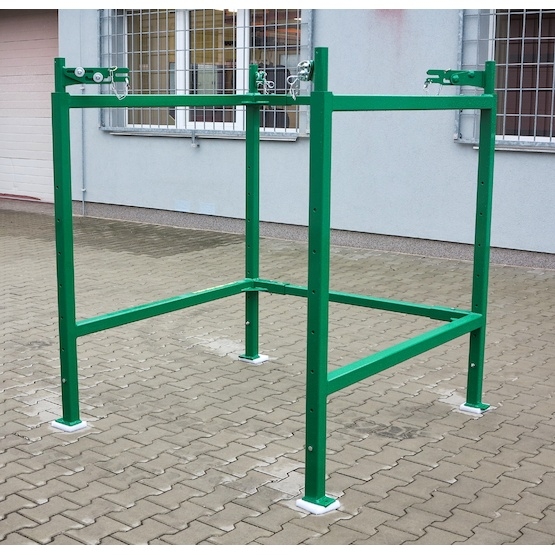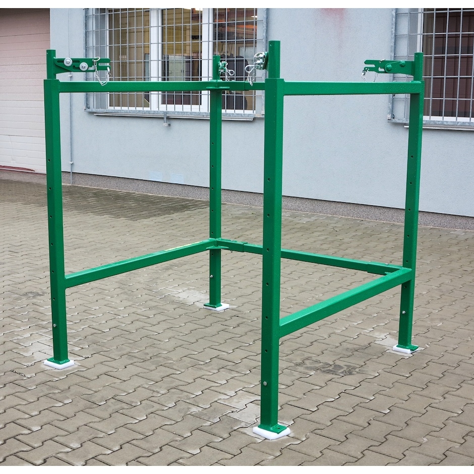 This stand has a reinforced construction (made of 60×60×4 mm box section steel) and has an adjustable hook height from 145 to 250 cm, making it suitable for various larger sized Big-Bags. The length of the hooks is also adjustable, so this stand can be used for Big-Bags with a floor plan from 90x90 to 110x110 cm.